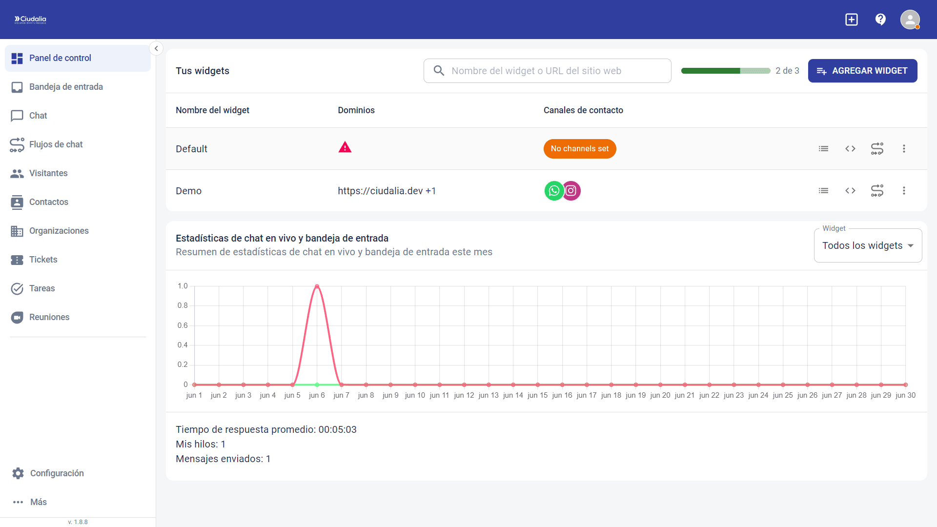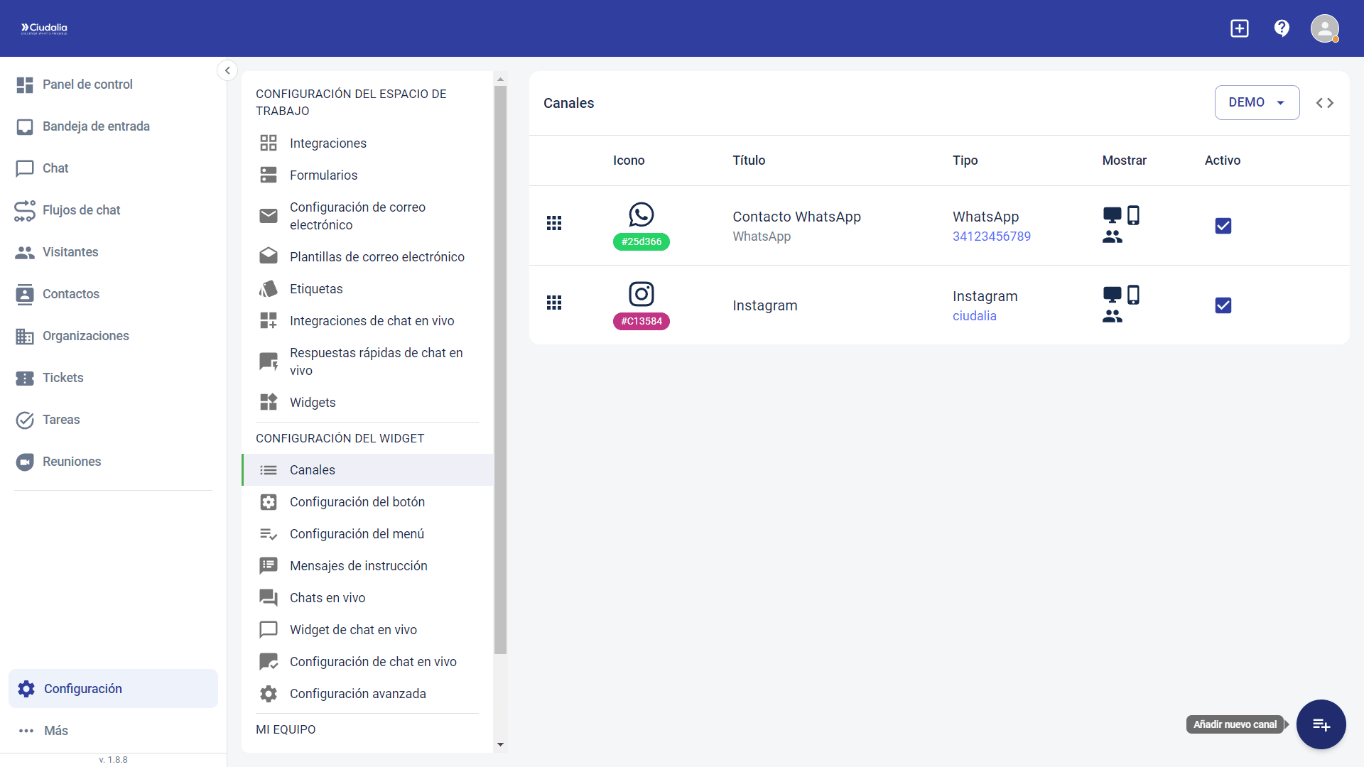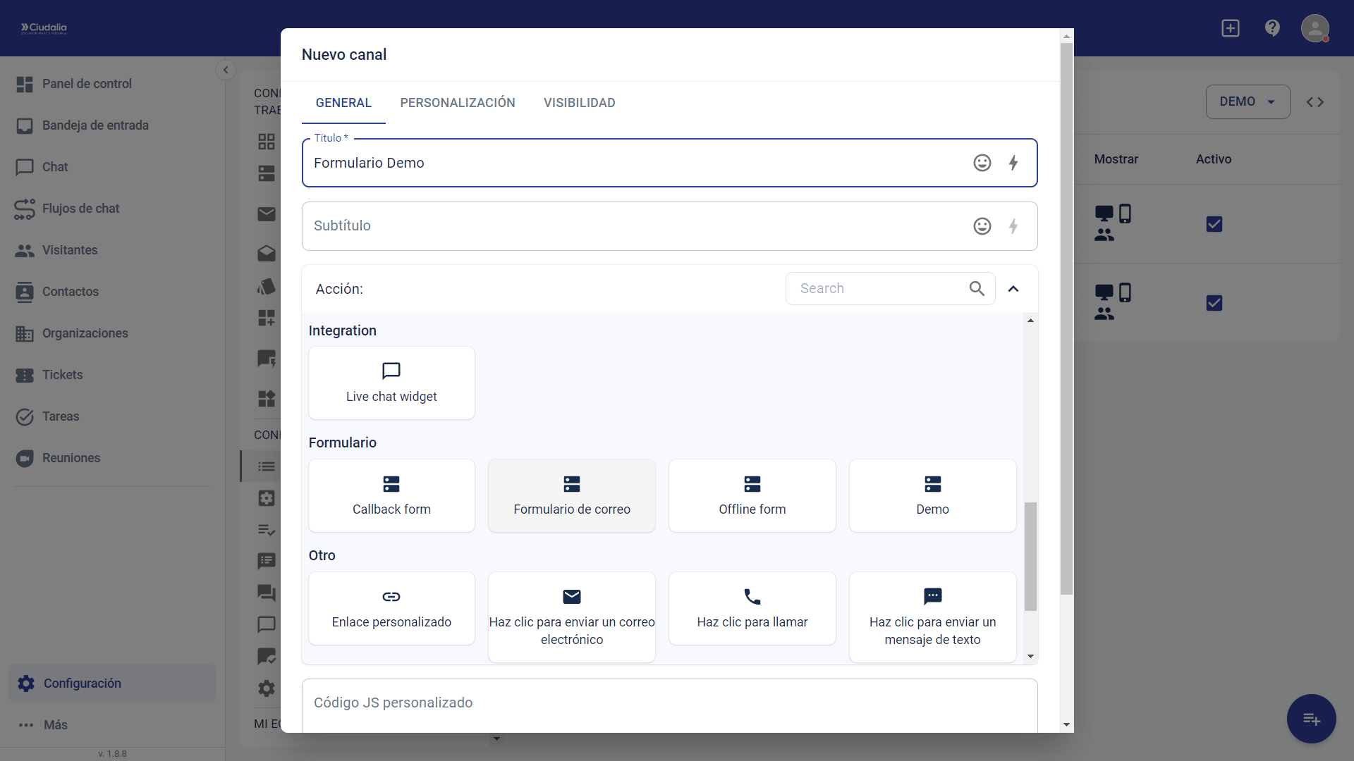 Asignación de un formulario de contacto para un sitio web con Chat Ciudalia