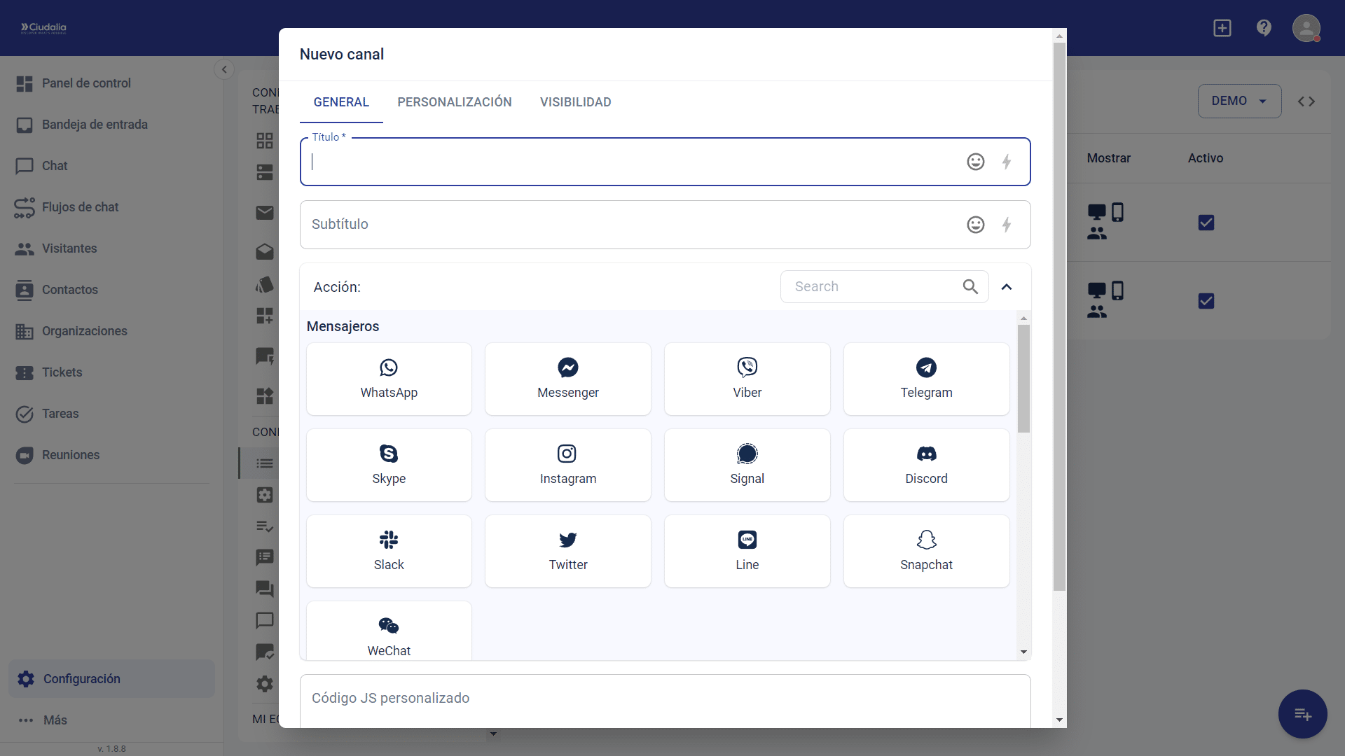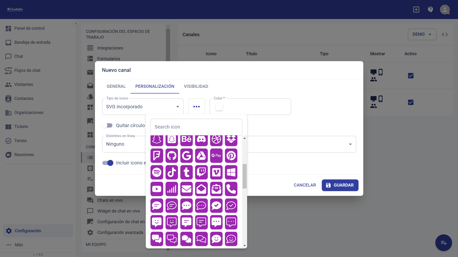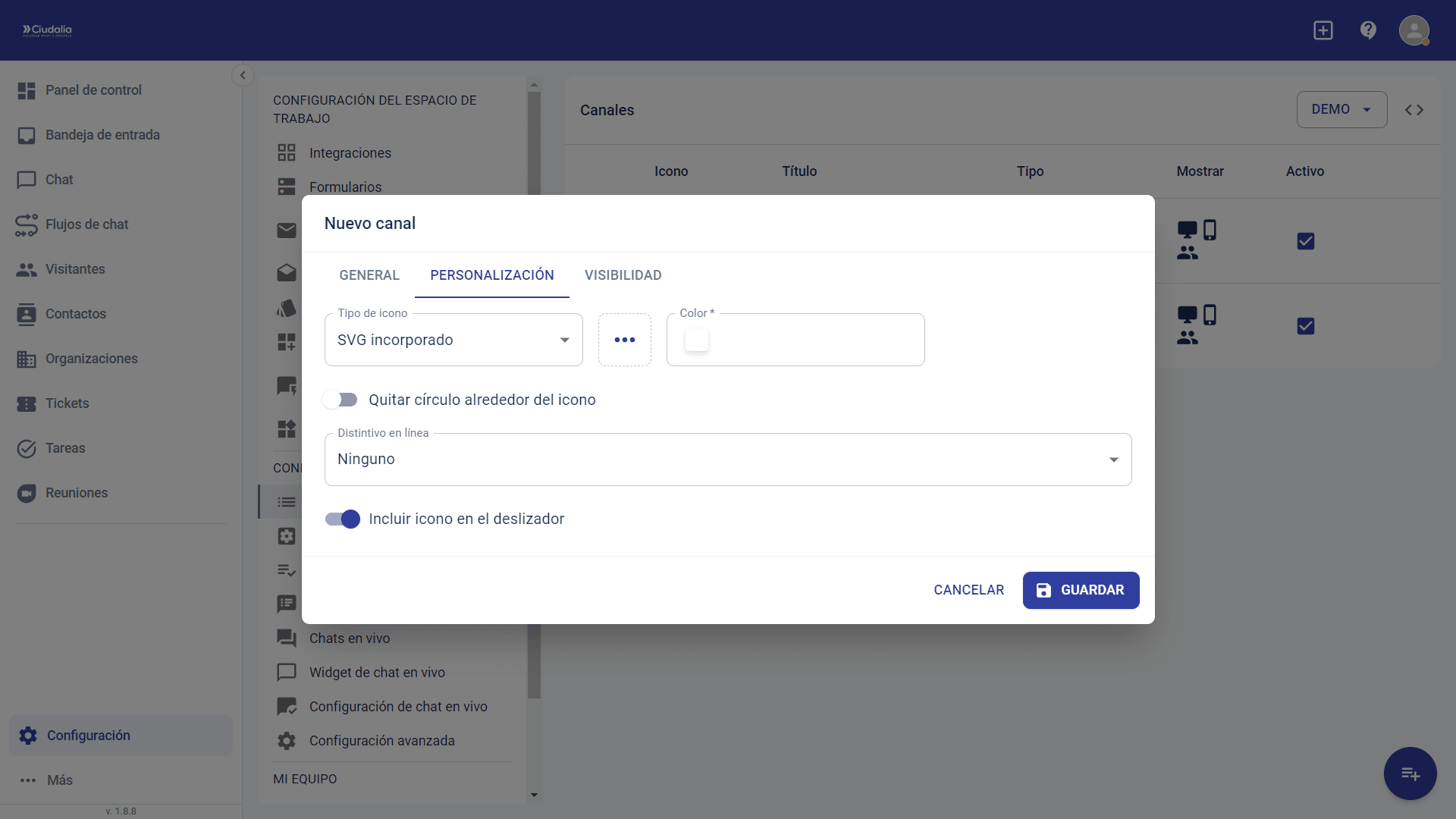 Asignación de un formulario de contacto para un sitio web con Chat Ciudalia