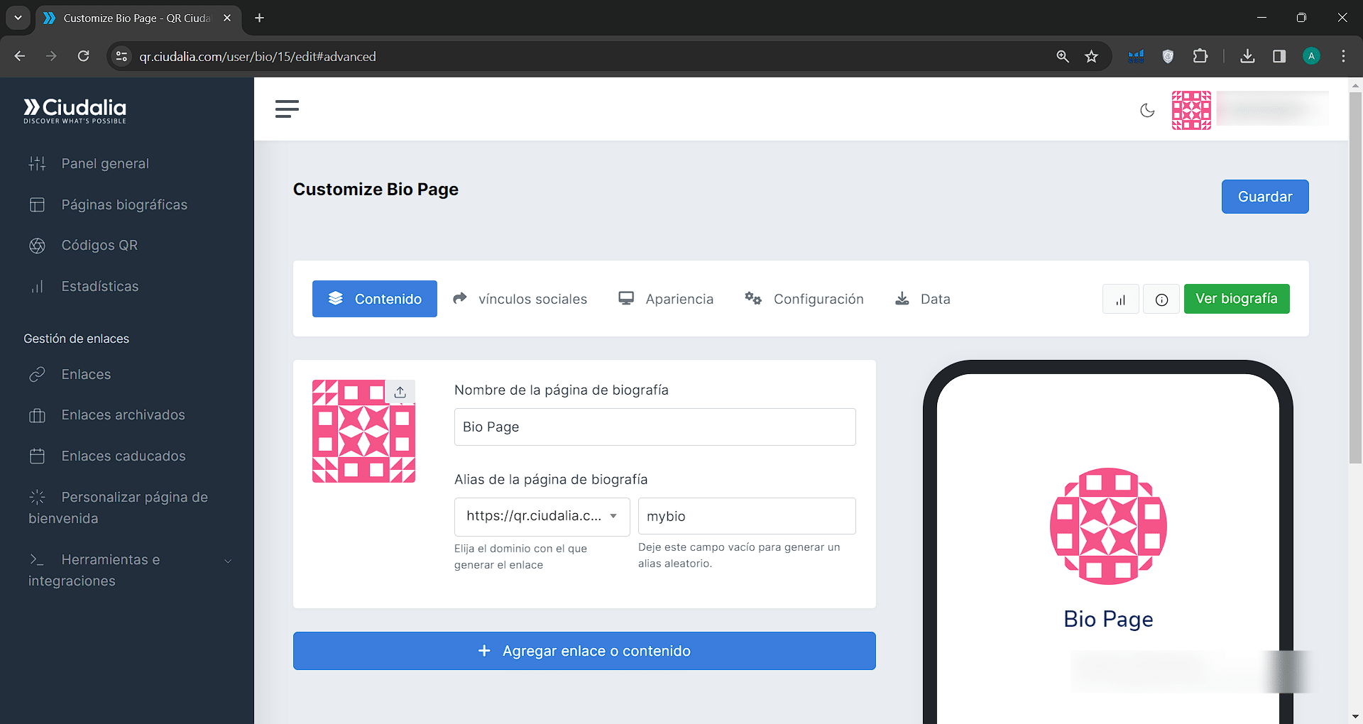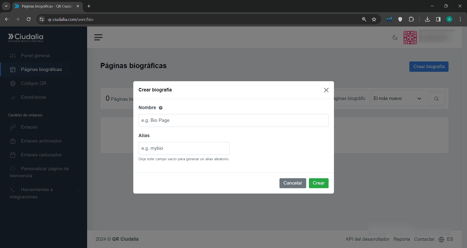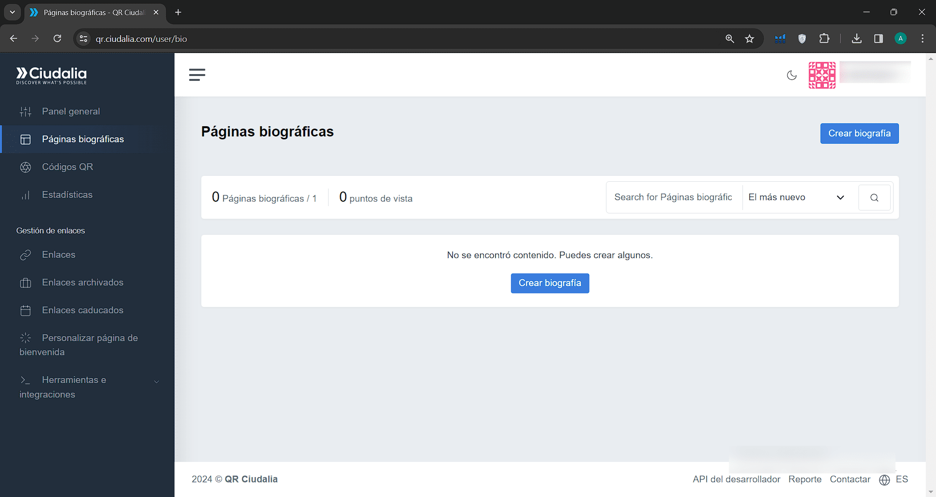 Accede a tu cuenta QR Ciudalia, y aprende a crear una página biográfica personal en 4 simples pasos