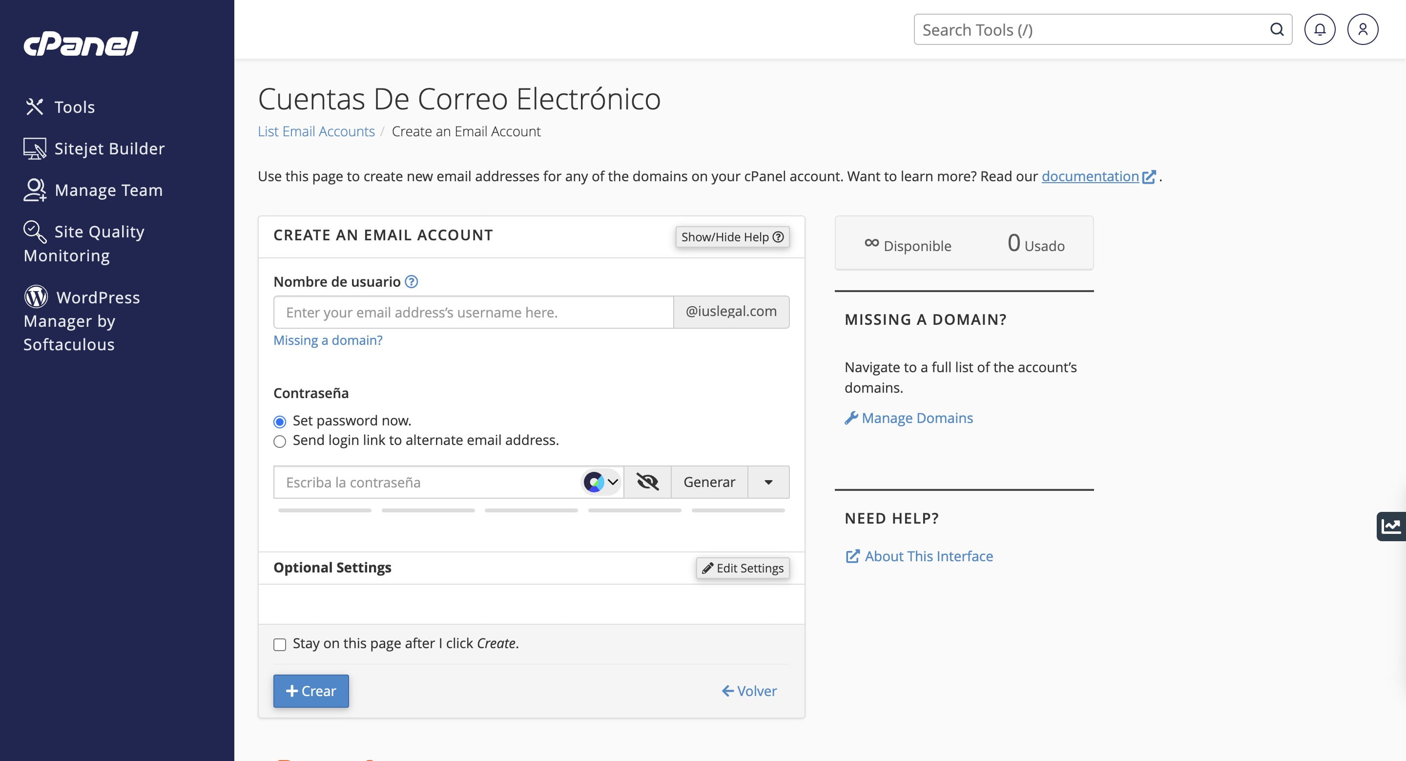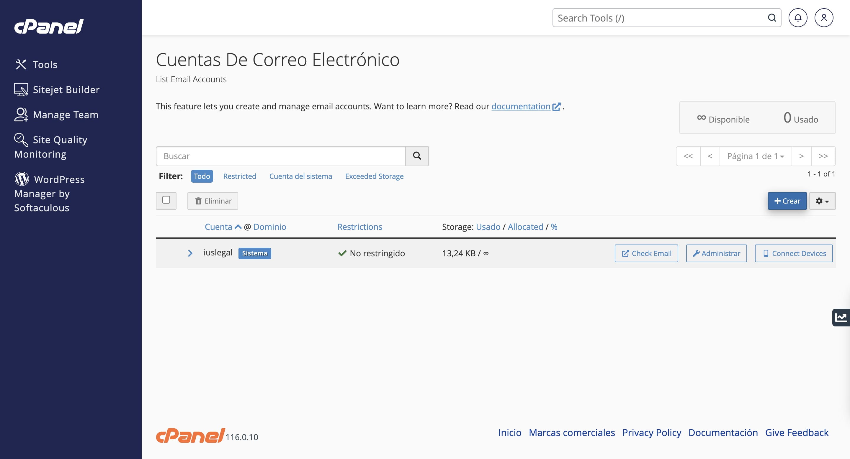 Haz Click en "Crear"