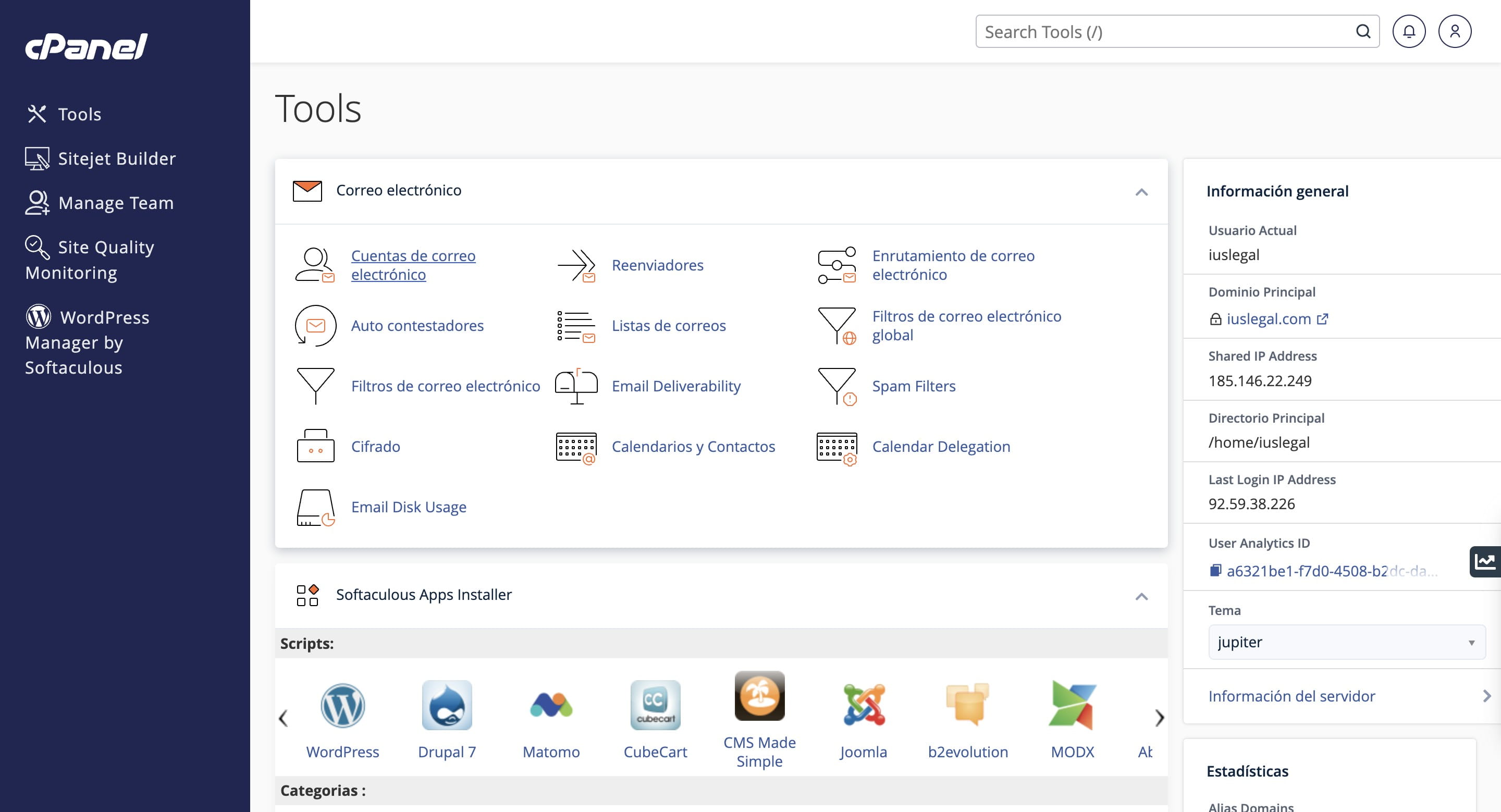 Accede a tu panel de control en tudominio.com/cpanel o https://ciudaliacom:2083/