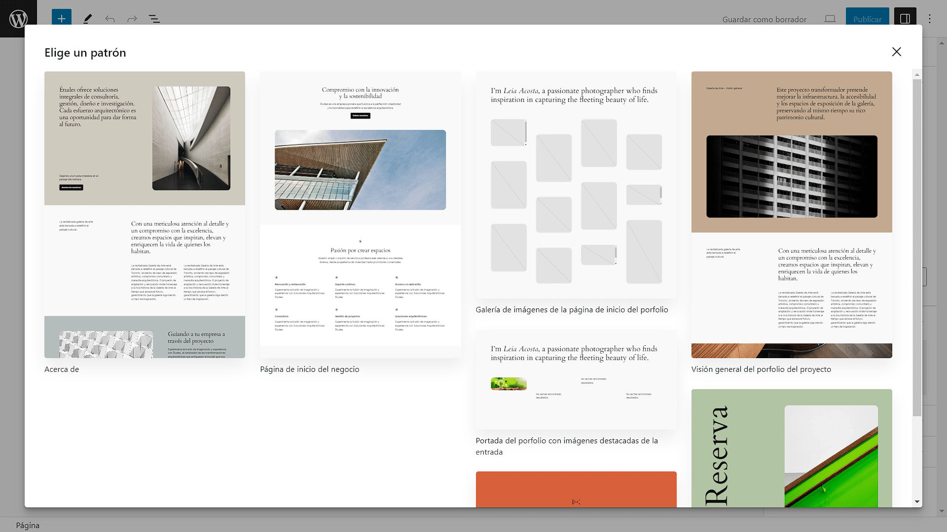 Podrás elegir una plantilla para comenzar a darle un diseño y estructura a la página, haz click en el que más se adapte a tus necesidades