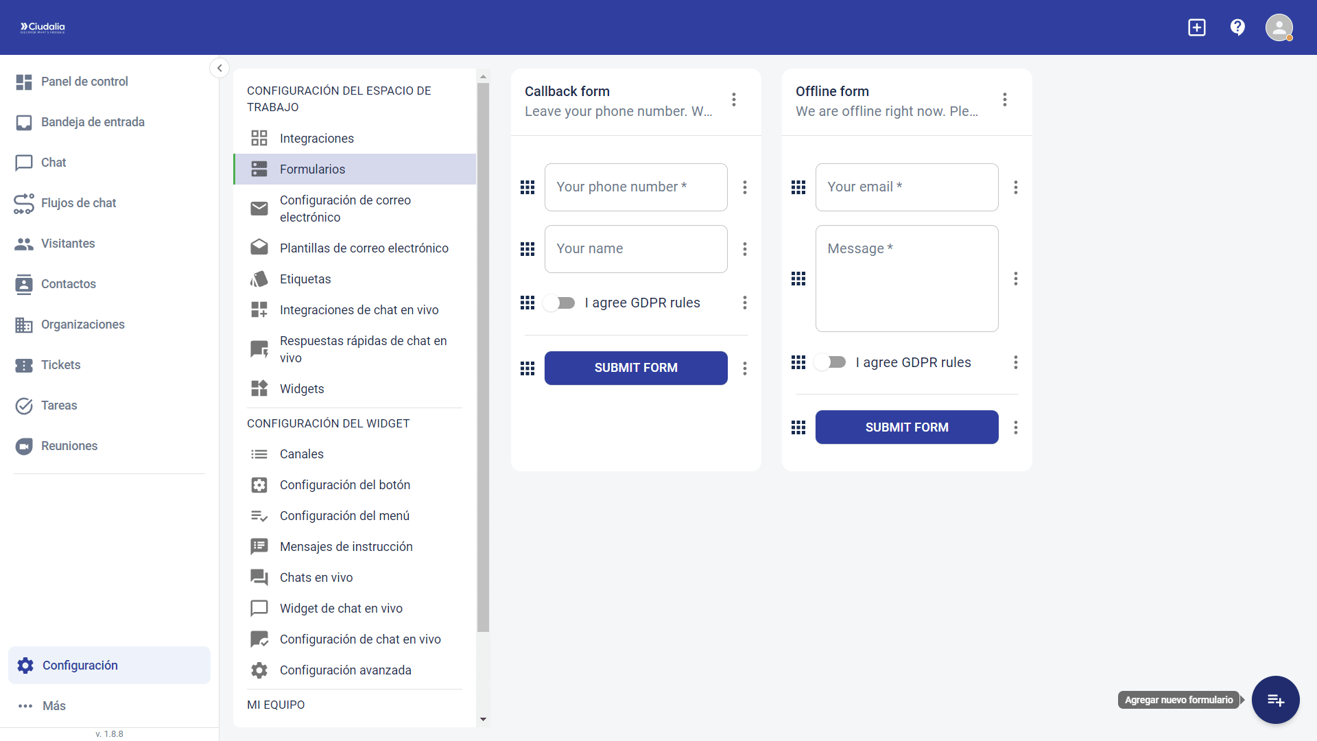 Luego en el icono de Agregar nuevo formulario