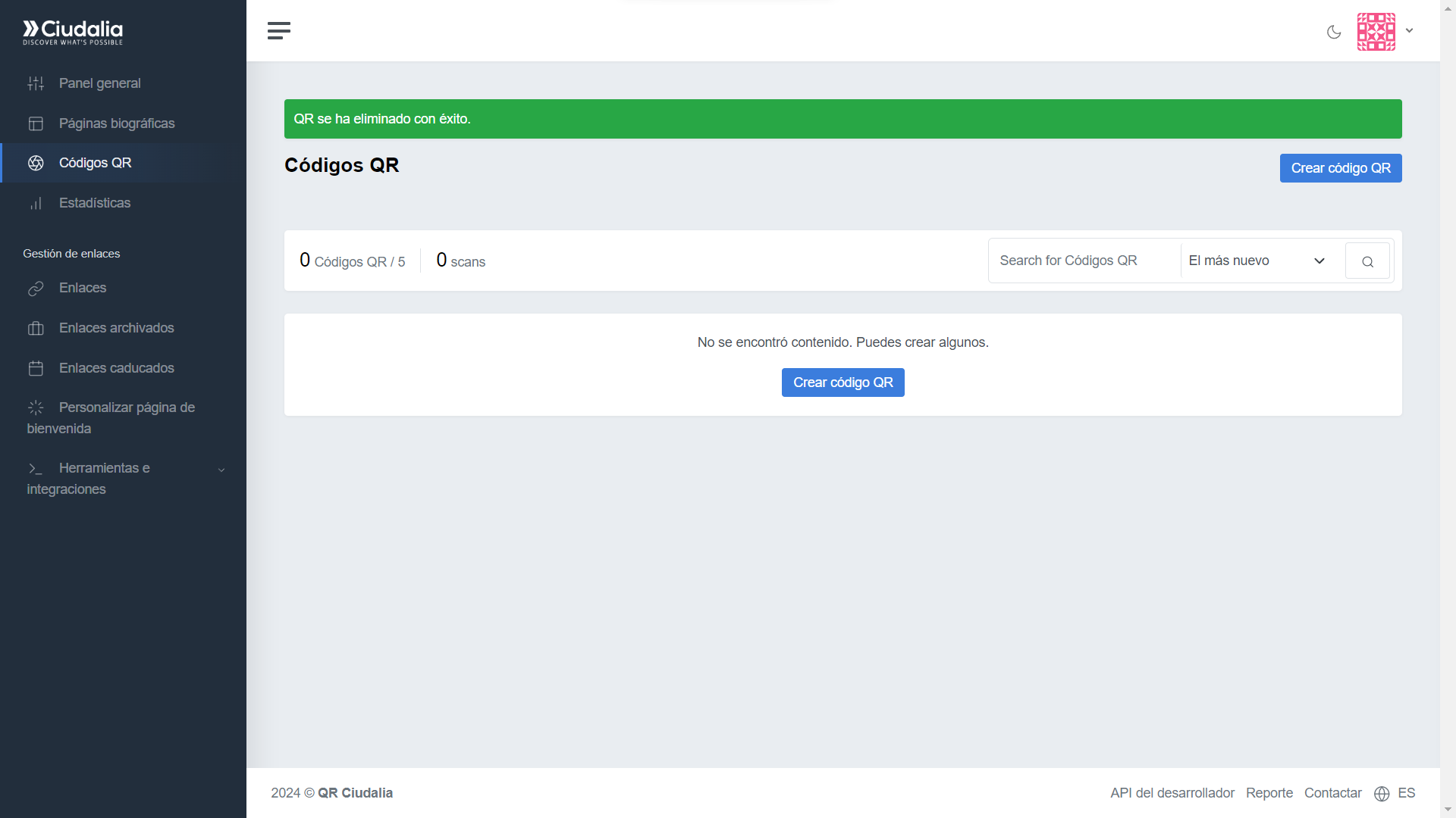 Y ¡Listo! Código QR eliminado