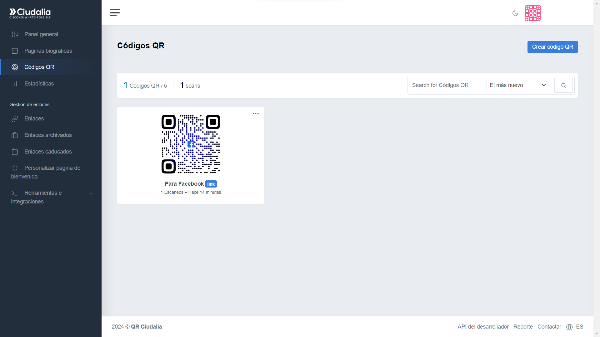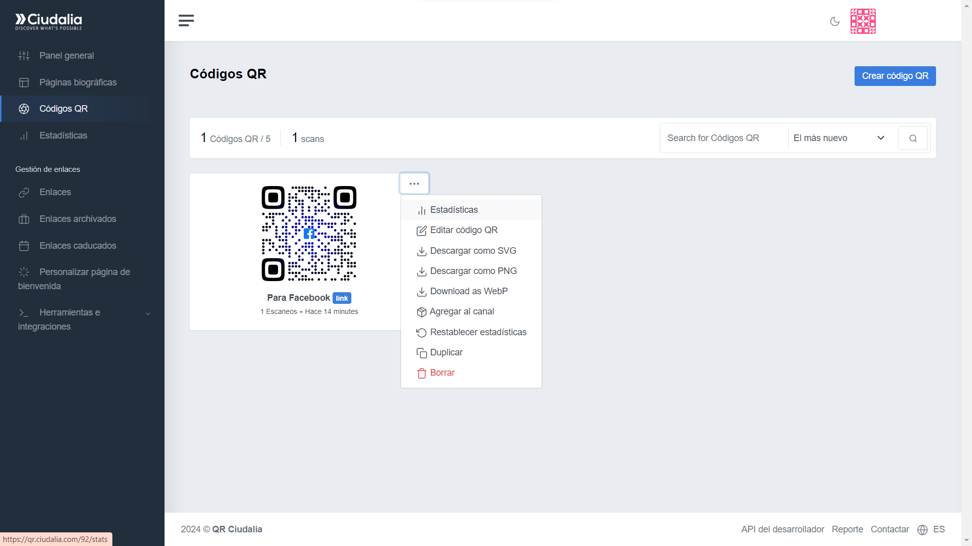 Selecciona la opción de "Códigos QR" en el menú